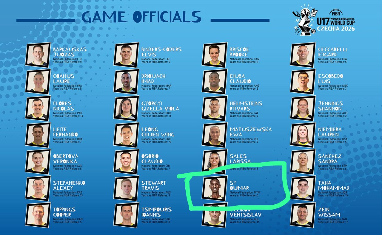La scène internationale du basketball comptera un représentant de choix. L’arbitre international mauritanien Oumar Sy a été officiellement sélectionné pour officier lors de la Coupe du monde féminine U17 2026, prévue du 11 au 19 juillet à Brno, en République tchèque.